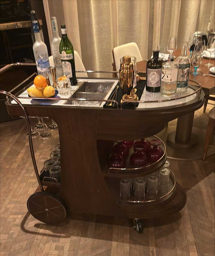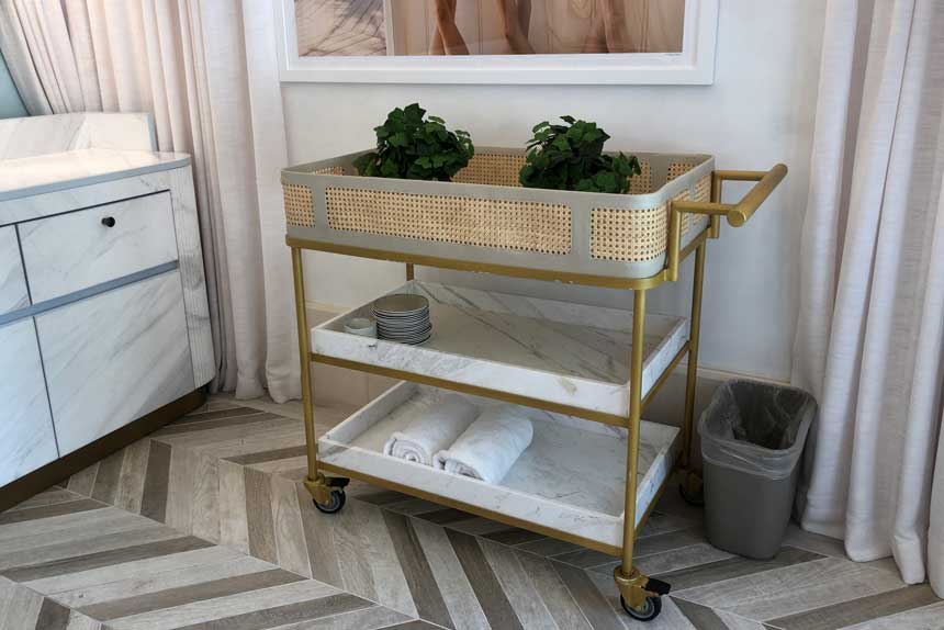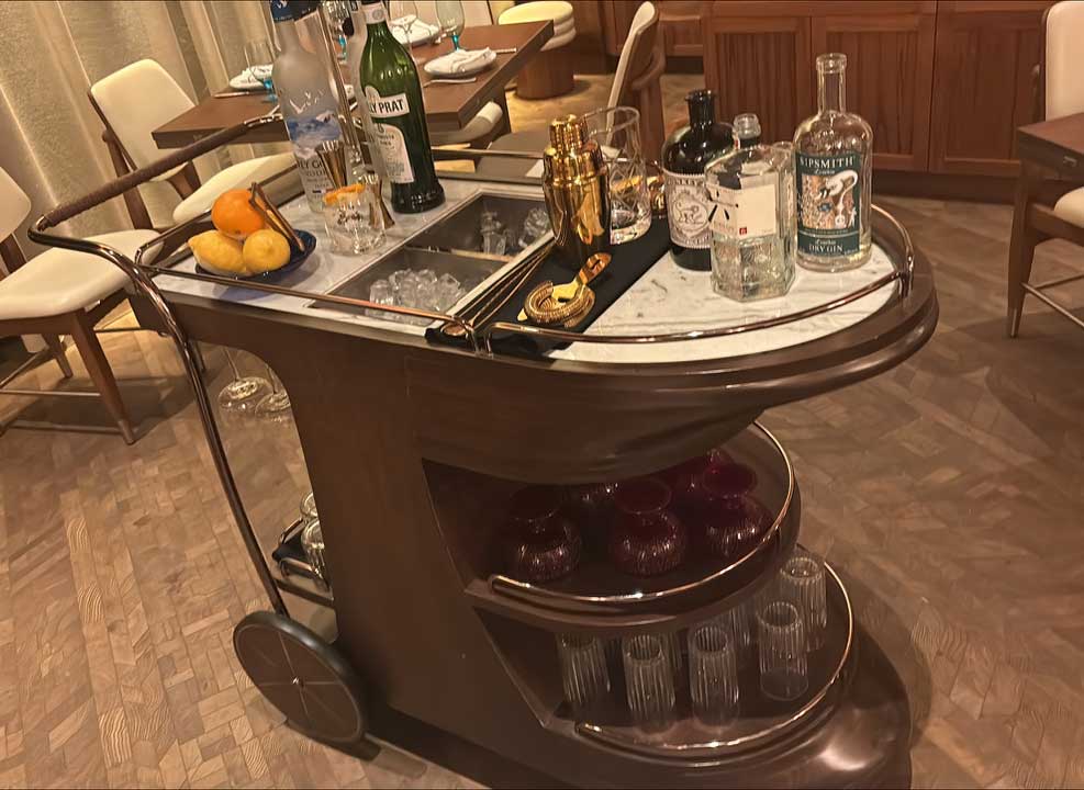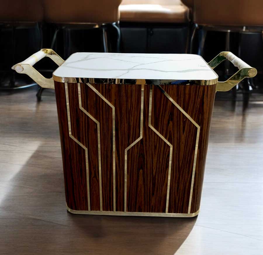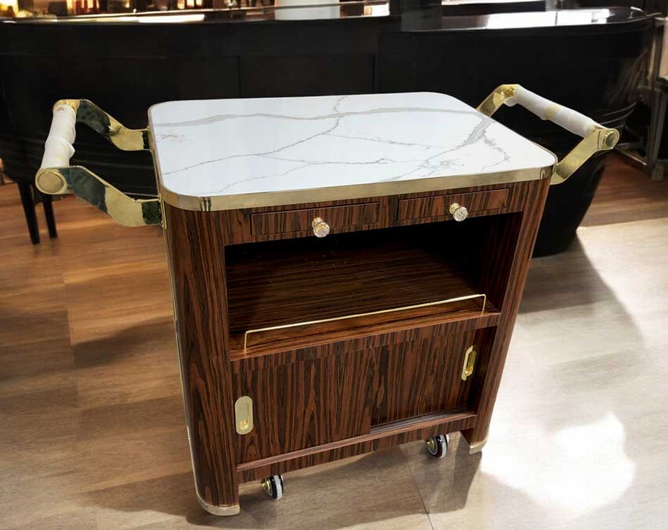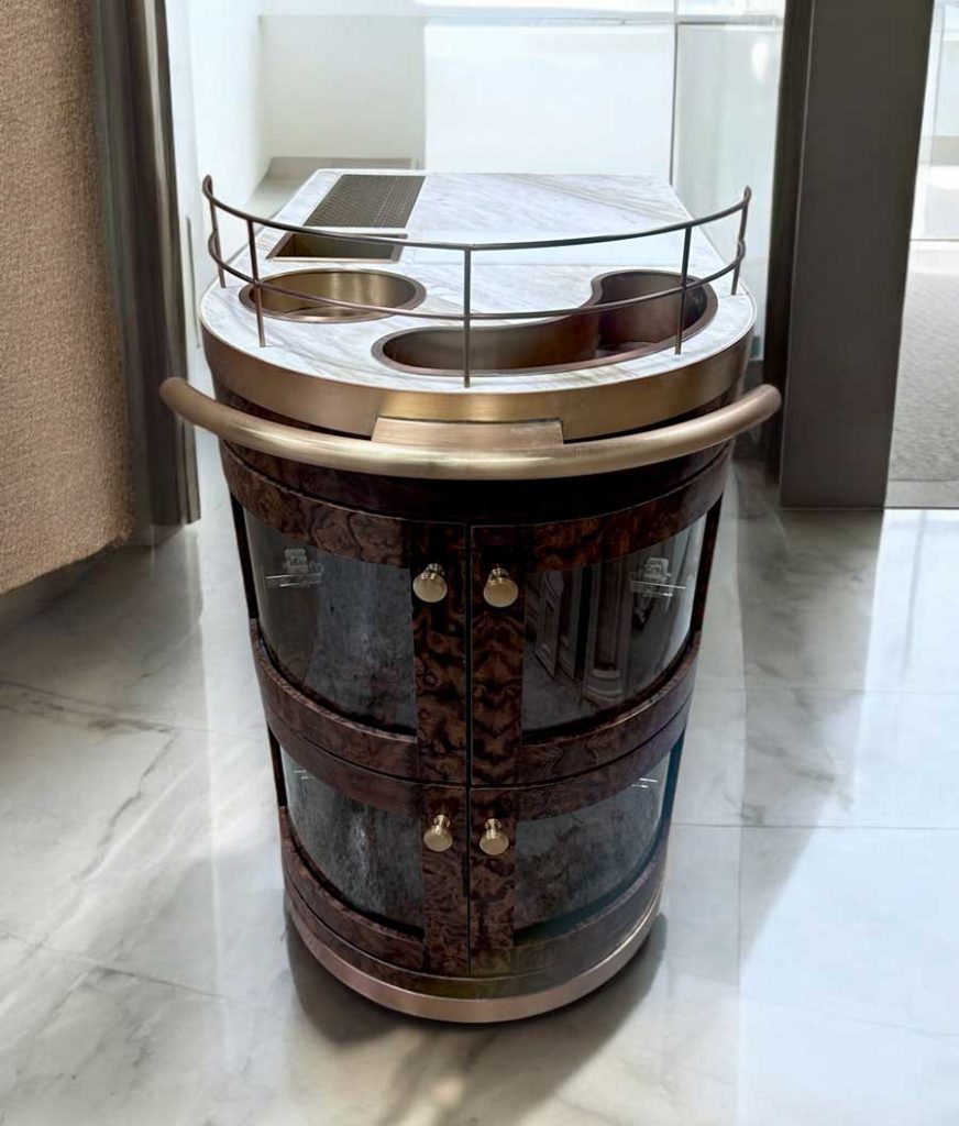 Crafted from the finest materials, from sleek stainless steel and lustrous wood finishes, our beverage carts exude sophistication and style. It offers ample storage for a variety of beverages, glassware, and bar accessories. The cart’s casters allow it to effortlessly glide from room to room, offering guests the convenience of table-side service.