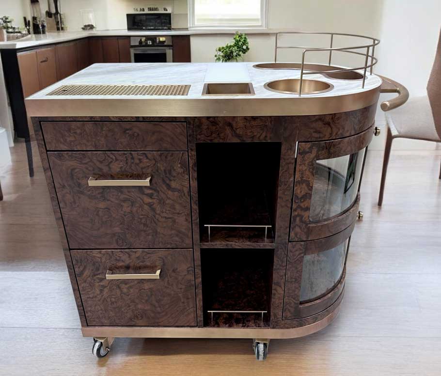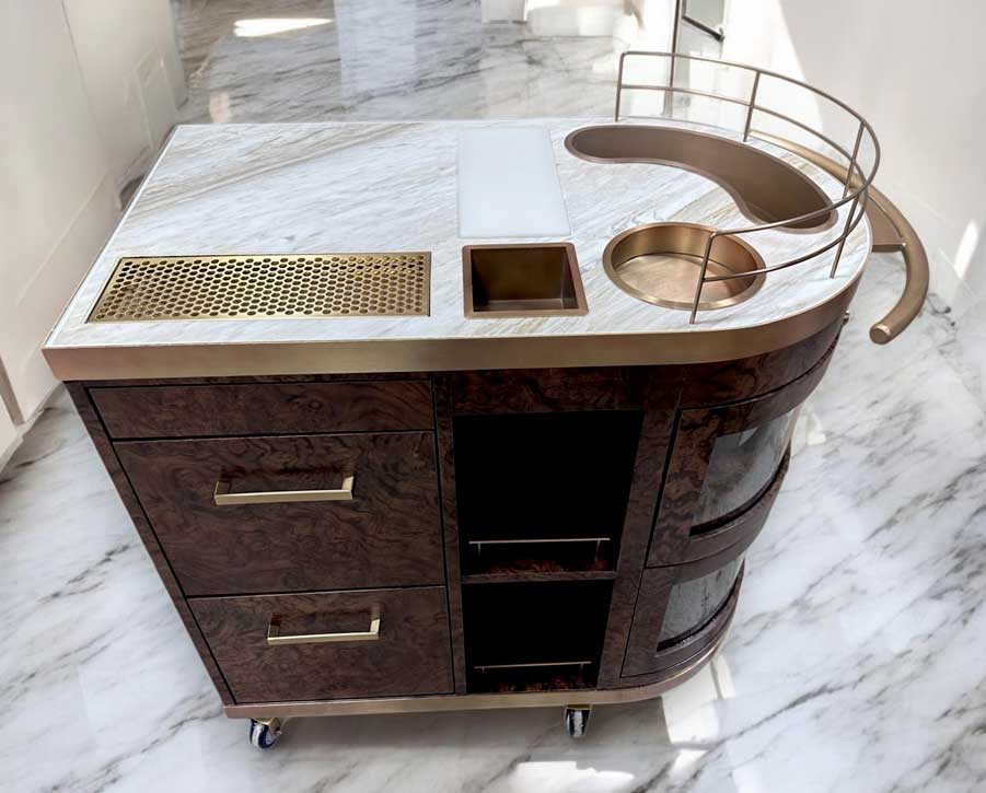 We are dedicated to using only the finest of materials combined with distinctive artisanship. We place an emphasis on providing a quality, premium product. Our mission is to enhance your event with glitz, glamour, and unforgettable style. Every aspect of your brand needs to embody luxury and opulence, which represent the hosts, theme, and vision of the venue. We work together with each food cart or beverage cart design to make sure it’s designed to your needs